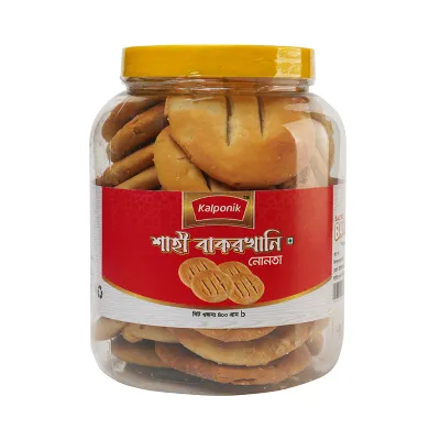 Kalponik Shahi Bakorkhani হলো পুরোনো ঢাকার ঐতিহ্যবাহী প্রিমিয়াম নোনতা বাকরখানি। এটি পুরোপুরি হাতে তৈরি, ক্রিস্পি এবং নরম টেক্সচারের। মুখে রাখলেই হালকা গলে যায়, যা সকালের নাশতা বা দুপুরের স্ন্যাক হিসেবে উপযুক্ত।